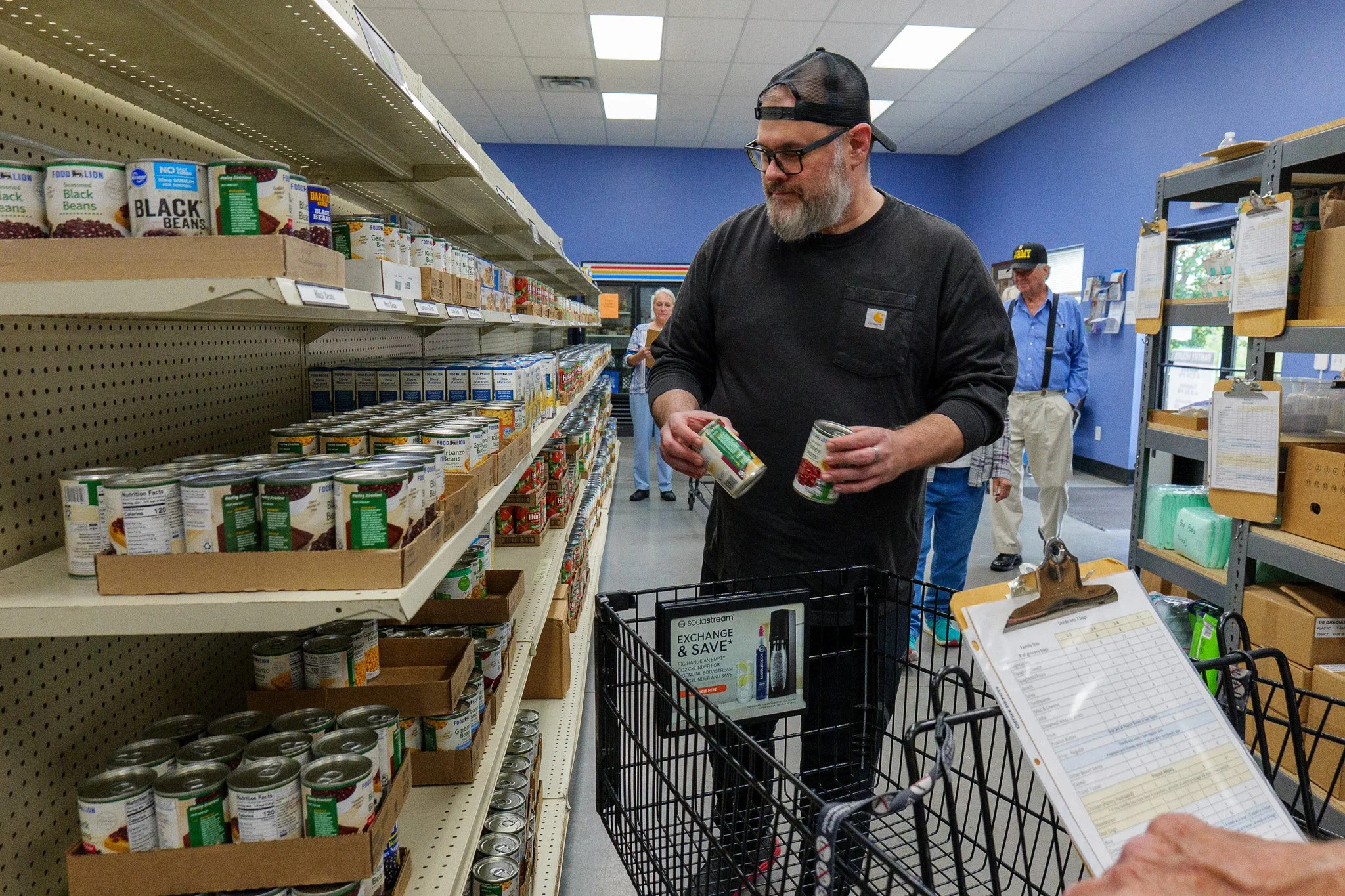 The Pantry offers two ways to shop. You may shop in the Pantry as if you are in a grocery store, picking out the items that you need. You may also drive up, and a volunteer will bring out bags of food based on your family size.